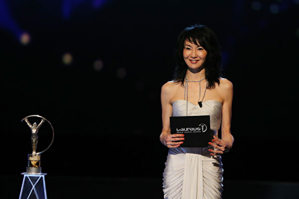 RIO DE JANEIRO, BRAZIL - MARCH 11: Actress Maggie Cheung appears on stage to announce the "Laureus World Breakthrough of the Year" Award during the awards show for the 2013 Laureus World Sports Awards at the Theatro Municipal Do Rio de Janeiro on March 11, 2013 in Rio de Janeiro, Brazil. (Photo by Ian Walton/Getty Images For Laureus)