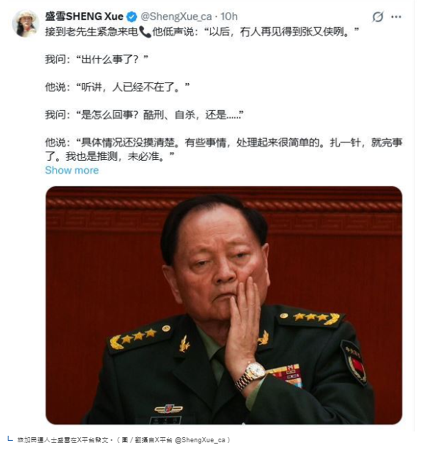 • 中共内斗失控?张又侠是死是活?同一天传出「2惊人版本」