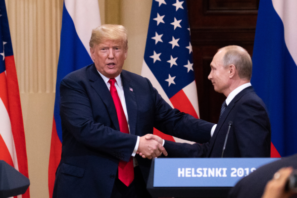 2018年7月16日,美國總統川普和俄羅斯總統普京在芬蘭赫爾辛基總統府舉行聯合記者會。(Samira Bouaou/英文大紀元)