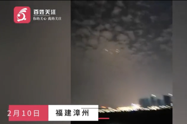 2月10日晚約8點,有不明飛行物悄然出現在福建漳州的夜空中,多名市民用手機記錄了其飛行畫面。