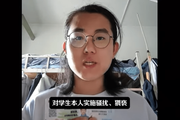 4月19日晚間,一名自稱名叫常某強的男網友在網上同時發視頻和舉報信,實名舉報北京理工大學機械與車輛學院副院長、教授、博士生導師宮琳。稱宮琳徇私舞弊,猥褻騷擾學生,與學生發生不正當關係。(視頻截圖)