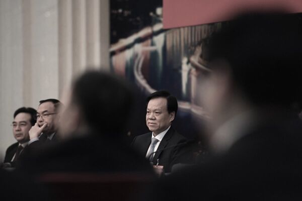 Chongqing Communist Party Secretary Chen Miner (C) attends the Chongqing province delegation meeting at the 19th Communist Party Congress in the Great Hall of the People in Beijing on October 19, 2017. (Photo by Greg Baker / AFP)