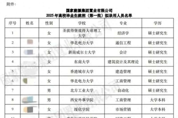 近日,中共國家能源集團置業有限公司一份高校畢業生統招擬錄用名單引發關注,有網友對擬錄用名單中部分人員情況提出質疑。此後該名單被刪除。(網絡圖片)
