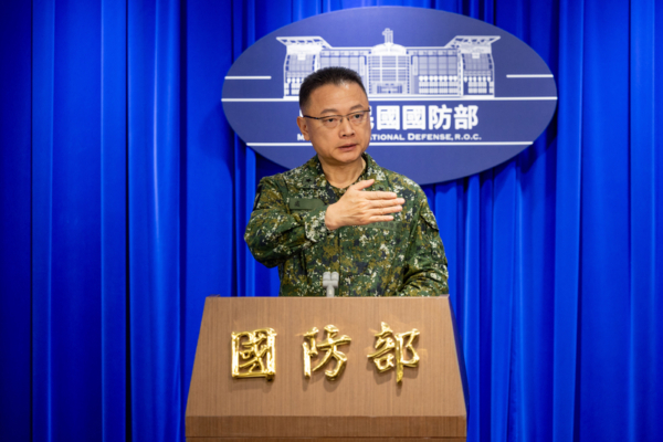 因應共軍「海峽雷霆-2025A」演練,中華民國國防部2025年4月2日召開記者會。圖為國防部發言人孫立方少將。(中華民國國防部提供)