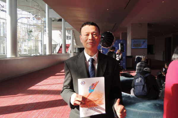 2025年4月3日下午,來自中國大陸的王明義先生觀賞了神韻國際藝術團在西雅圖馬里恩奧利弗麥考劇院(Marion Oliver McCaw Hall)的首場演出。(文遠/大紀元)