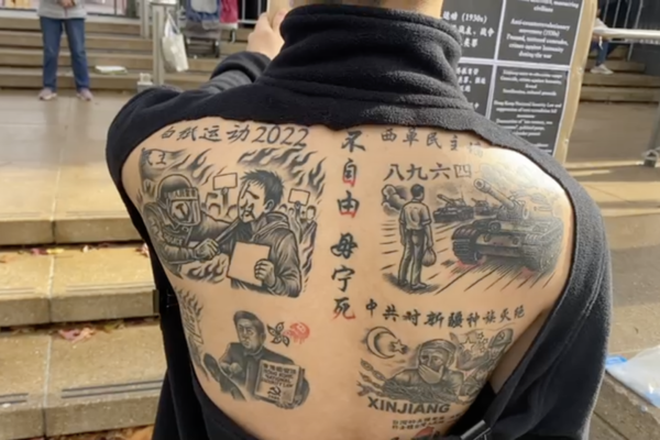 【2025年06月11日訊】(記者李圓明採訪報導)「為什麼走到反共這一步?是因為我見過太多了。」今年新西蘭民主平台紀念「六四」36周年的活動上,一個年輕人在圖片展現場展示了其背部的紋身圖案,包括「六四」坦克人、白紙運動等內容,令人震撼。