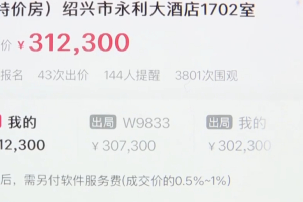 據浙江6頻道《1818黃金眼》報導,劉女士平時住在浙江杭州,她在拍賣平台上看中了位於紹興世紀東街的永利大酒店1702室,該房建築面積83平方左右。3月30日,她以31.23萬元的價格拍下此房,並已支付5萬元保證金。