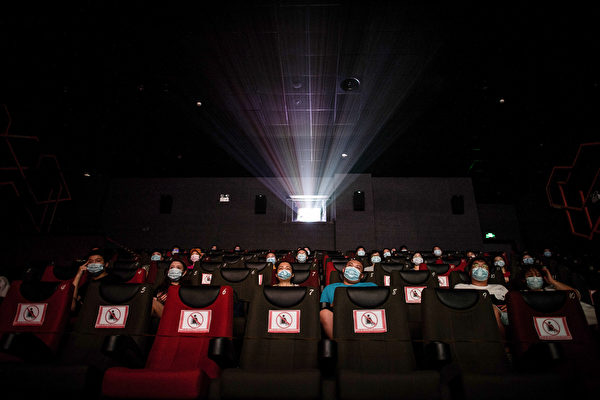 2020年7月20日,觀眾在湖北的一家電影院中觀看電影。(STR/AFP via Getty Images)