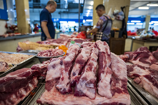 中國生豬價格連續16個月處於成本線以下。圖為2023年11月27日,南京一家農產品市場上的豬肉攤位。(CFOTO/Future Publishing via Getty Images∆)
