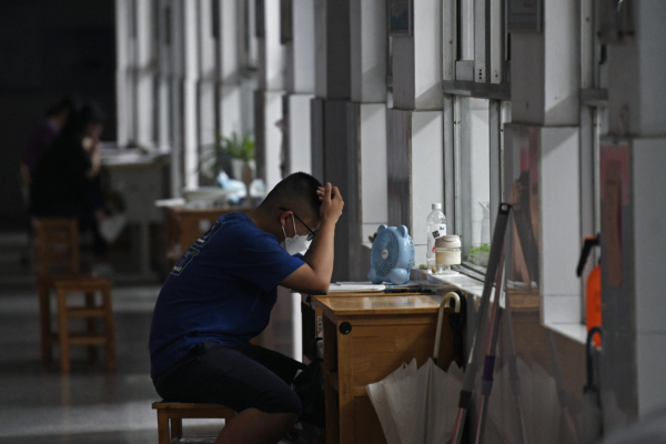 This photo taken on May 29, 2022 shows a high school student going through exam papers, ahead of the annual "Gaokao" or college entrance examinations in China, in Changzhou in China's eastern Jiangsu province. - China OUT (Photo by AFP) / China OUT (Photo by STR/AFP via Getty Images)