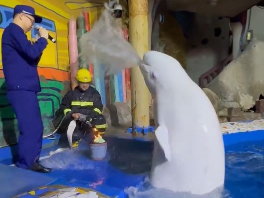 【2025年04月08日訊】近日,大連聖亞海洋世界進行消防演練,沒想到培訓還沒開始,火就白鯨撲滅了,消防人員也被澆成落湯鷄,白鯨還洋洋得意的露出水面歡叫。搞笑的情景被傳到網上後迅速火了。