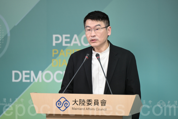 2025年2月27日下午,大陸委員會(陸委會)召開例行記者會,由副主委兼發言人梁文傑主持。(宋碧龍/大紀元)