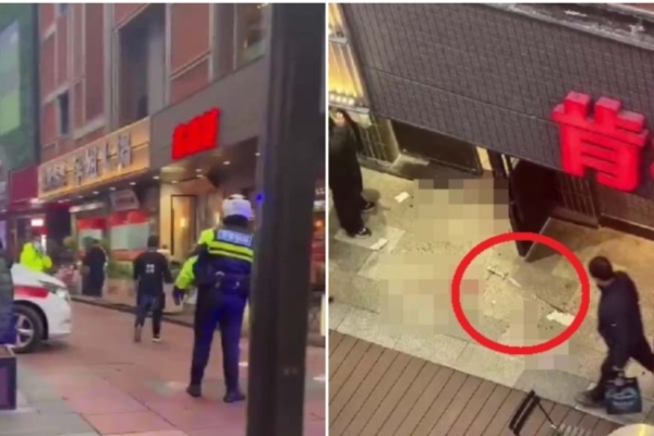 網傳視頻顯示,寧波天一廣場的萍姐火鍋店外,停著一輛救護車,多名警察在現場,視頻中可以看到地上有大片血跡,旁邊肯德基門外的地上還遺留著一把帶血的劍。