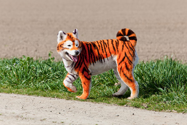 江蘇省泰州市的「溱湖灣森林動物王國」把狗染成老虎來吸引遊客參觀。圖為一隻被畫成老虎的小狗,與本文無關。(Shutterstock)