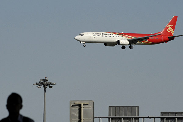 This picture taken on September 4,2012 shows a Shenzhen airlines plane preparing to land at Beijing Capital International airport. Boeing announced on September 5, 5260 planes would be sold in China over the next 20 years worth a total of 670 billion USD. (Photo by WANG ZHAO / AFP)