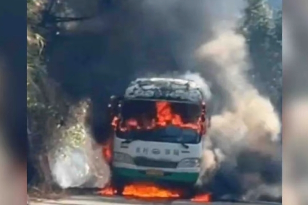 網上視頻及圖片顯示,起火的是一輛中型公交車,停在一山林間的小道上,車上冒出熊熊烈火及滾滾濃煙。大火被撲滅後,公交車已被燒得只剩車架。
