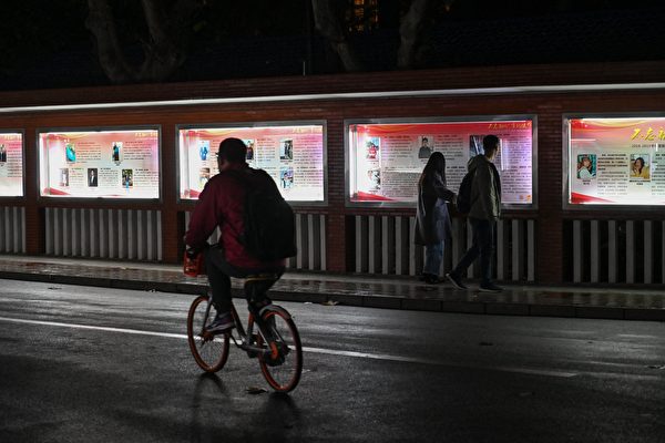 圖為2019年12月18日上海復旦大學校園內的紅色宣傳。(Hector Retamal/AFP)