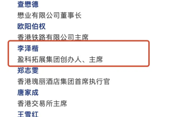 在這份名單的「企業界代表」一欄中,尤其值得注意的是,在李嘉誠旗下長和公司深陷輿論漩渦的敏感時刻,李嘉誠次子、盈科拓展集團創辦人、主席李澤楷現身北京,出席這一論壇。