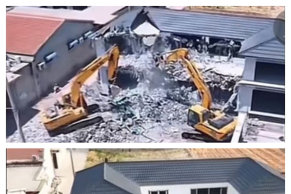 河北邢台市平鄉縣于柳莊村一「豪宅」被強拆,導致村民損失百餘萬元,網友嘆可惜,網上罵聲一片。(視頻截圖合成)