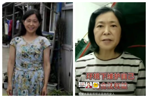 江蘇維權人士桃紅因強拆上訪被非法拘禁近三年,近日錄視頻求救!今昔陶紅。(視頻截圖/大紀元合成)