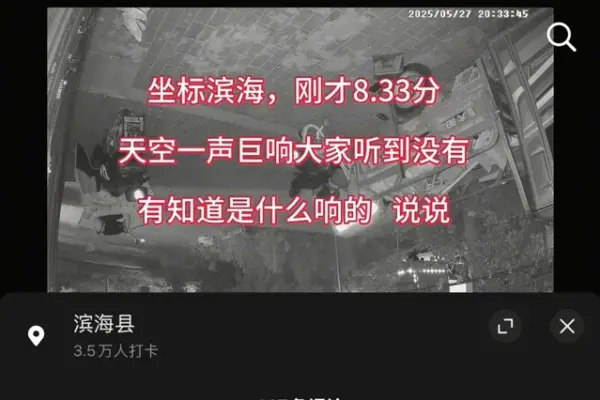日前,多名網友發視頻稱,5月27日在晚上8時33分左右,江蘇濱海突然發出一聲巨響,不少人紛紛質疑是否「飛機音爆?」