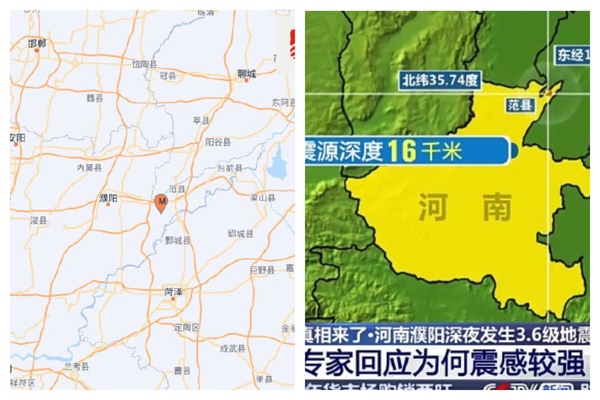 2月22日凌晨,河南濮陽市范縣發生3.6級地震。(網絡截圖)