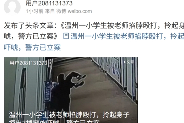 網傳視頻顯示,一男老師將小學生大頭朝下抱起來之後,伸出窗外,小學生抓住窗戶極力反抗,最終沒被拎出去。