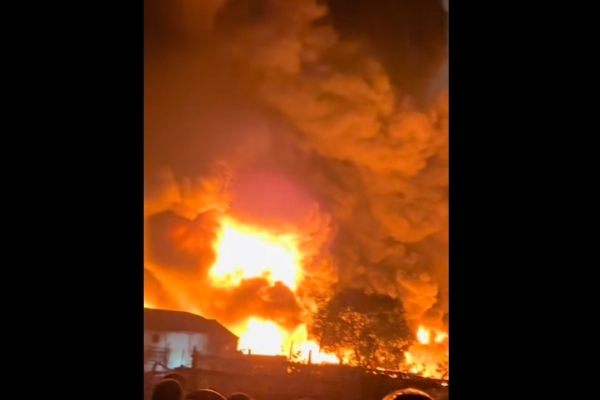網傳現場視頻顯示,夜色中一處廠房濃煙滾滾,火光衝天,照亮半個夜空,許多民衆在附近駐足圍觀,但由於火勢太猛,人們束手無策。