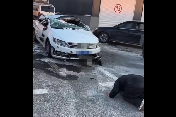 網傳視頻顯示,車子受損嚴重,反光鏡掉了,擋風玻璃碎了,車燈也沒了。