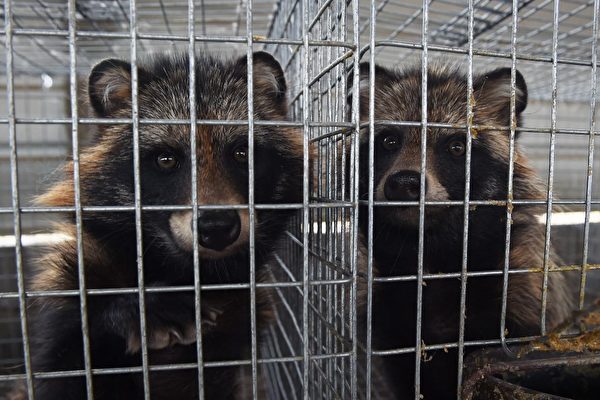 一項調查研究表明,中國的一些養殖狐狸、貉和水貂的農場極其容易爆發動物傳人的疾病。圖為2015年7月21日,河北省張家口一家飼養貉的農場。(Greg Baker/AFP)