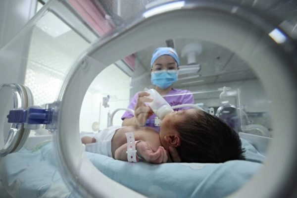 示意圖。圖爲2021年5月11日,中國西南部貴州省丹寨縣的一家醫院,一名醫務人員正在給一名新生嬰兒餵奶。(STR/AFP via Getty Images)