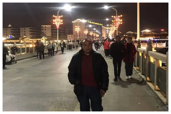 2025年1月28日21時中國新年除夕夜,獨立作家詩人時評人呂千榮在江西撫州市臨川區文昌橋。(受訪者提供)