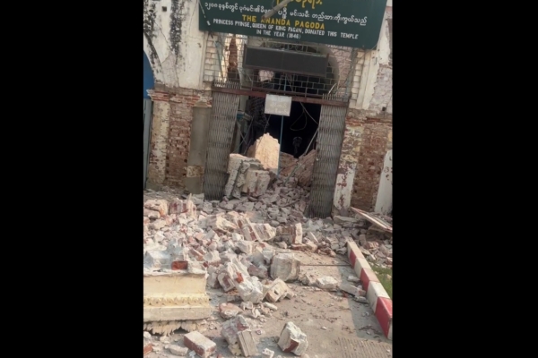 緬甸中部地區3月28日下午發生芮氏規模7.7地震,震央位於距曼德勒市約17.2公里處,曼德勒市災情嚴重。 曼德勒國際機場的天花板也因震動而坍塌,所有航班均已取消。