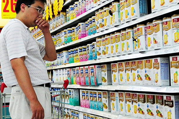 蒙牛乳業淨利下跌98%。圖為北京民眾在超市選購牛奶。( Franko Lee/AFP/Getty Images)