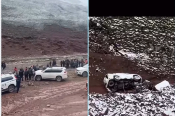 網友發布的視頻顯示,當地山坡上沒有植被,土質看起來很容易鬆動。視頻中還有小汽車倒在山坡下。