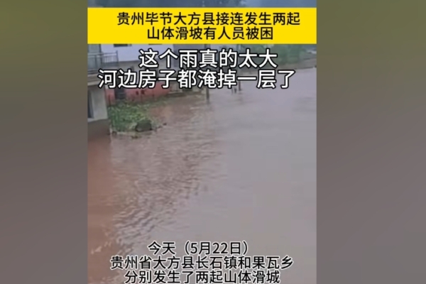 據新華社報導,5月22日凌晨3時許和早上9時許,貴州省大方縣長石鎮和果瓦鄉慶陽村分別發生山體滑坡,長石鎮有2人被困,果瓦鄉有多人被困。據相關部門消息,初步判斷6棟8戶十餘人被困。
