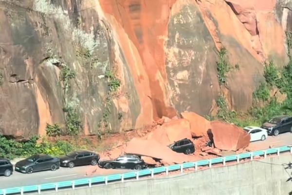 【2025年05月02日訊】大陸「五一」放假,不少民眾外出旅遊。5月1日,一網友發視頻稱,到貴州赤水丹霞大瀑布景區遊玩,結果遇上景區附近發生山體塌方,多輛車被砸。