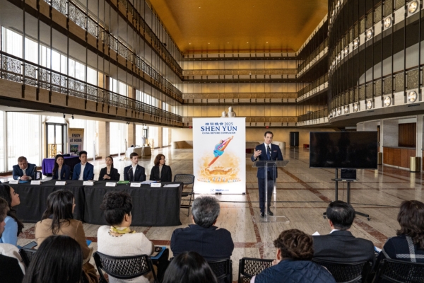 2025年3月26日,神韻藝術團在林肯中心的演出拉開序幕。當天,神韻召開新聞發布會,曝光中共炸彈威脅、訴訟和指控背後的黑幕。(Samira Bouaou/The Epoch Times)