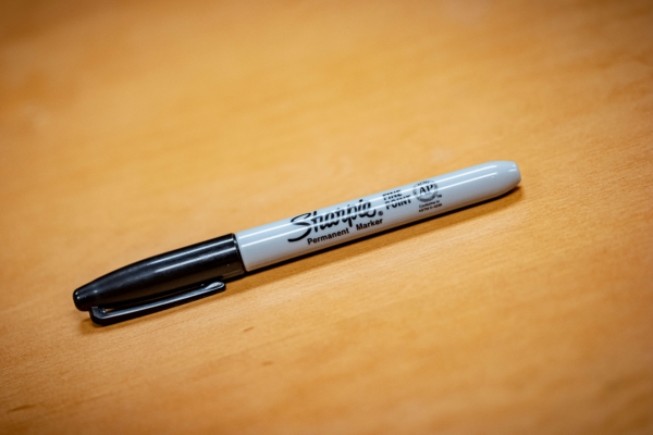 A Sharpie brand marker sits on a table in Phoenix, Arizona, on November 5, 2020. - Allegations of fraud and foul play in the 2020 election spread across the internet on November 4 as officials counted ballots in battleground states that will determine the outcome of the closely fought vote between Donald Trump and Joe Biden. Some claimed that Arizona voters were pushed to use Sharpie pens on their ballots in a bid to make them unreadable and keep votes for Trump from being counted. But officials -- including Arizona Secretary of State Katie Hobbs -- said using a Sharpie would not invalidate ballots, while voters also had the option of bringing their own pens. (Photo by OLIVIER TOURON / AFP) (Photo by OLIVIER TOURON/AFP via Getty Images)