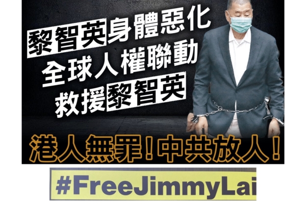【2025年02月24日訊】(記者李熙採訪報導)曾為香港發聲,捍衛新聞自由的前香港壹傳媒創辦人黎智英,因反對《國安法》等被以勾結外國勢力等罪逮捕,被單獨監禁近四年,在獄中飽受折磨,身體健康狀況惡化。全球人權組織呼籲中共釋放黎智英。