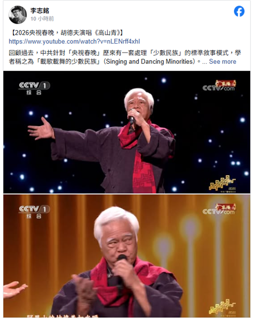 最后,李志铭表示,阿里山是邹族的传统领域,而胡德夫本身是卑南族与排湾族血统。虽然他在大中华视角下被视为「全体台湾原住民」的代表,但这种「以一概全」的政治操作,恰恰抹杀了台湾原住民各族群之间巨大的语言与文化差异,强调「这正是殖民视角下常见的手段-将所有『他者』模糊化为一个单一的、易于管理的群体」。