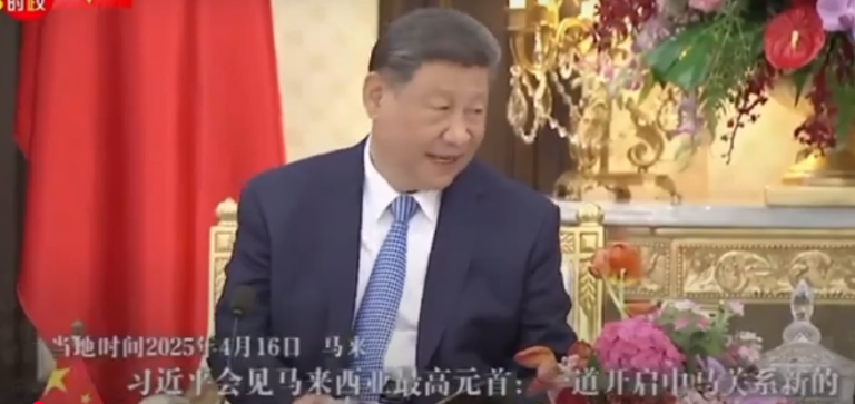 习近平开启他的东南亚访问旅程,中国面对新的国际局势强化和临国的贸易和关系,习近平今日访问马来西亚会晤马来西亚最高元首伊布拉欣,习近平发言时频频看向手中的笔记本,而伊布拉欣也频频看向习近平和他的笔记本。习近平过去在国际场合就特别谨慎经常盯着稿演说,这次访问马来西亚也一如既往地小心,即便只是简短的发言。