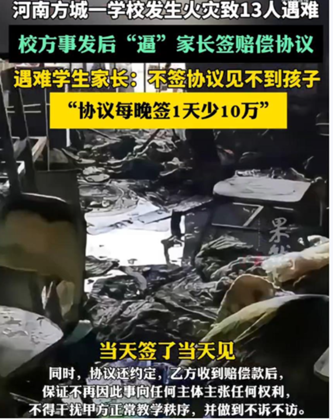 更令人心寒的是,部分家长在事故后反映,曾被要求签署「协议」,内容涉及补偿金额与「不再追究、不再上访、不对外发声」等条款。