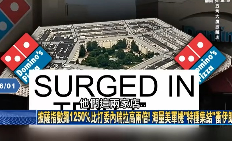 五角大厦披萨指数暴涨「美将动手」? 美战机现伊朗外海、摩萨德煽动内乱!
