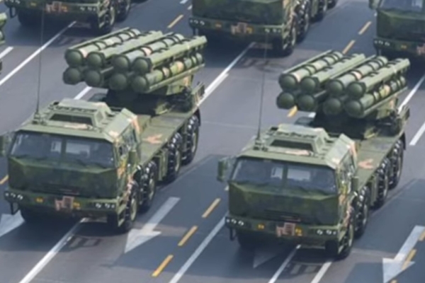 不少人猜測,中共軍工清洗擴大跟中共賣給委內瑞拉和伊朗的裝備在實戰中失效有關。圖為2019年10月1日,中共PHL-16(PCH-191)遠程火箭炮系統在北京天安門的閱兵儀式上(視頻截圖)