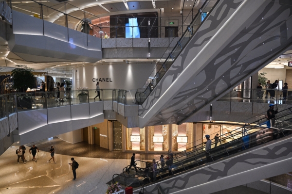 2024年6月5日,人們在上海陸家嘴金融區的一家購物中心內購物。(HECTOR RETAMAL/AFP)