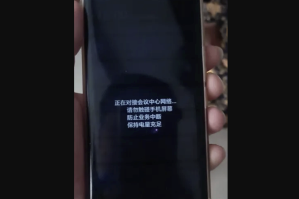 在屏幕共享過程中,吳奶奶的手機被植入了木馬病毒,導致手機屏幕持續顯示「系統正在對接會議中心網絡……」。