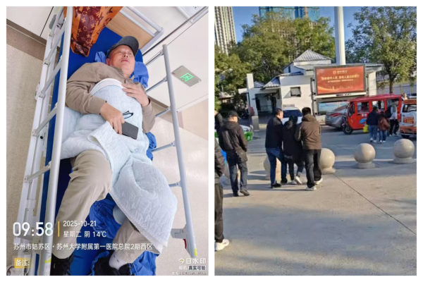 10月21日早晨6點40分左右,蘇州訪民吳其和在居住小區附近被監控他的黑保安追趕,導致他摔倒骨折,目前正在醫院治療,由於傷情嚴重,醫生要他住院治療一個月。