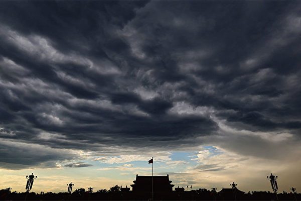 烏雲密布的北京天安門廣場。(Getty Images)