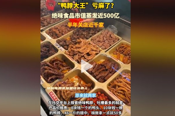 中國滷味企業陷危機 有4000家絕味鴨脖店倒下